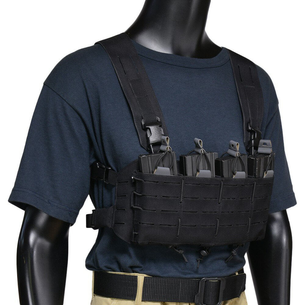 無駄な部分をはぶき、可能な限り軽量な設計にすることで、別の装備品と併用しやすくなり、幅広いカスタマイズが可能となったコンパクトサイズのチェストリグです。